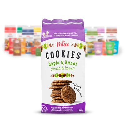 Cookies Eple&Kanel glutenfri 150g Finax fra Finax er et produkt innen Bakevarer og kjeks, Kjeks, Cookies. Produktet er tilgjengelig hos Meny til en pris av 42.50 kr. Produktet leveres av Markedspool salg as. Produktet ble første gang registrert 11.6.2023 og sist oppdatert 3.8.2023. Prisen har holdt seg stabil på 42.50 kr.