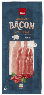 Coop Bacon uten Svor 130g fra COOP er et produkt innen Pålegg & frokost, Bacon. Produktet er tilgjengelig hos Coop til en pris av 26.50 kr. Produktet leveres av FATLAND SALG AS. Produktet ble første gang registrert 9.1.2022 og sist oppdatert 16.7.2023. Prisen har holdt seg stabil på 26.50 kr.