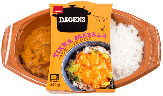 Coop Dagens Tikka Masala Kylling & Ris fra COOP Produktet er tilgjengelig hos Coop til en pris av 54.90 kr. Produktet inneholder følgende allergener: Melk, Sennep. Produktet leveres av HOLMENS AS. Produktet ble første gang registrert 9.1.2022 og sist oppdatert 16.7.2023. Prisen har holdt seg stabil på 54.90 kr.