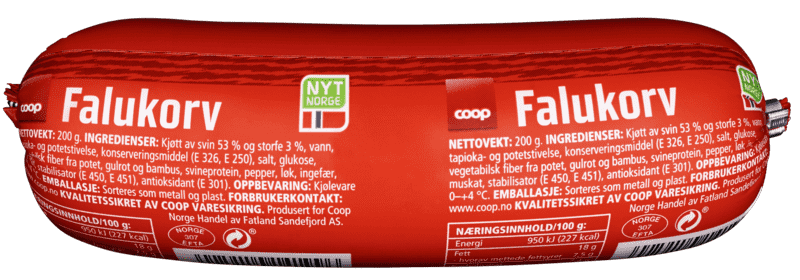 Coop Falukorv 200g fra COOP er et produkt innen Pålegg & frokost, Kjøttpålegg, Kjøttpålegg. Produktet er tilgjengelig hos Coop til en pris av 21.50 kr. Produktet leveres av FATLAND SALG AS. Produktet ble første gang registrert 9.1.2022 og sist oppdatert 16.7.2023. Prisen har endret seg fra 24.90 kr til 21.50 kr over tid.