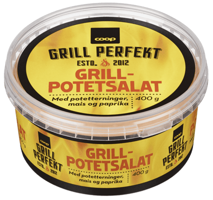 Coop Grill Perfekt Grillpotetsalat 400g fra COOP Produktet er tilgjengelig hos Coop til en pris av 22.50 kr. Produktet inneholder følgende allergener: Egg, Sennep. Produktet leveres av SALATMESTERN AS. Produktet ble første gang registrert 15.7.2022 og sist oppdatert 16.7.2023. Prisen har holdt seg stabil på 22.50 kr.