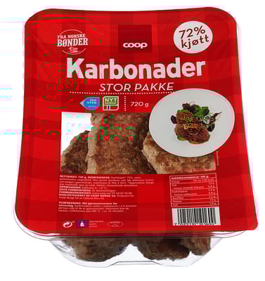 Coop Karbonader 720g fra Coop Vekten er 720 g. Produktet leveres av COOP NORGE SA EMV. Produktet ble første gang registrert 11.6.2023 og sist oppdatert 6.9.2023.
