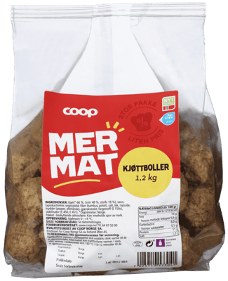 Coop Kjøttboller 1,2kg fra COOP Produktet er tilgjengelig hos Coop til en pris av 65.00 kr. Produktet leveres av FATLAND SALG AS. Produktet ble første gang registrert 9.1.2022 og sist oppdatert 16.7.2023. Prisen har holdt seg stabil på 65.00 kr.