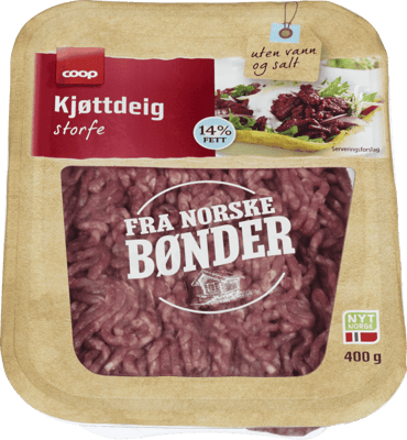 Coop Kjøttdeig 14% 400g fra COOP Produktet er tilgjengelig hos Coop til en pris av 66.90 kr. Produktet leveres av FATLAND SALG AS. Produktet ble første gang registrert 9.1.2022 og sist oppdatert 16.7.2023. Prisen har endret seg fra 63.90 kr til 66.90 kr over tid.