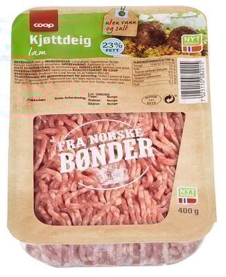 Coop Kjøttdeig av Lam 400g 23% fra Coop Vekten er 400 g. Produktet leveres av FATLAND SALG AS (COOP-PRODUKTER). Produktet ble første gang registrert 11.6.2023 og sist oppdatert 6.9.2023.