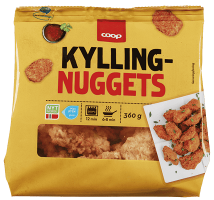 Coop Kyllingnuggets 360g fra COOP Produktet er tilgjengelig hos Coop til en pris av 53.90 kr. Produktet leveres av FATLAND SALG AS. Produktet ble første gang registrert 9.1.2022 og sist oppdatert 16.7.2023. Prisen har endret seg fra 49.90 kr til 53.90 kr over tid.