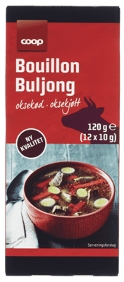 Coop Oksebuljong 12stk 120g fra COOP Produktet er tilgjengelig hos Coop til en pris av 19.50 kr. Produktet leveres av INTERAL S.A.. Produktet ble første gang registrert 9.1.2022 og sist oppdatert 16.7.2023. Prisen har holdt seg stabil på 19.50 kr.