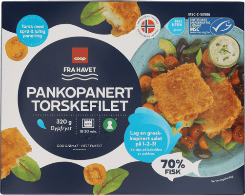 Coop Pankopanert Torskefilet 320g fra COOP Produktet er tilgjengelig hos Coop til en pris av 56.90 kr. Produktet inneholder følgende allergener: Fisk. Produktet leveres av LERØY SEAFOOD AS. Produktet ble første gang registrert 9.1.2022 og sist oppdatert 16.7.2023. Prisen har holdt seg stabil på 56.90 kr.