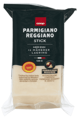 Coop Parmigiano Stick 125g fra COOP Produktet er tilgjengelig hos Coop til en pris av 44.90 kr. Produktet inneholder følgende allergener: Melk. Produktet leveres av GEIA FOOD A/S (EUR). Produktet ble første gang registrert 9.1.2022 og sist oppdatert 16.7.2023. Prisen har holdt seg stabil på 44.90 kr.