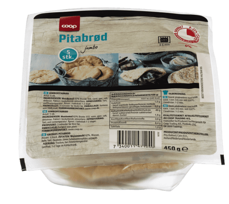 Coop Pitabrød Jumbo 450g fra COOP Produktet er tilgjengelig hos Coop til en pris av 22.90 kr. Produktet leveres av PITA-BAKKERIJ CAIRO B.V.. Produktet ble første gang registrert 9.1.2022 og sist oppdatert 16.7.2023. Prisen har endret seg fra 23.50 kr til 22.90 kr over tid.