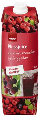 Coop Pluss Drue/Tranebær/Bringebær Juice 1l fra COOP Produktet er tilgjengelig hos Coop til en pris av 36.90 kr. Produktet leveres av RØRA FABRIKKER AS. Produktet ble første gang registrert 9.1.2022 og sist oppdatert 16.7.2023. Prisen har holdt seg stabil på 36.90 kr.