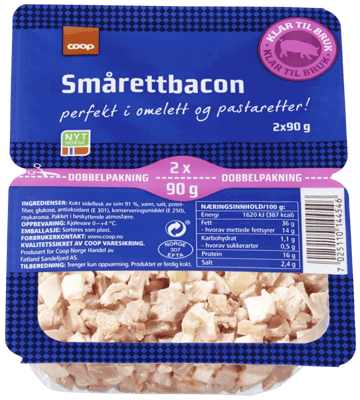 Coop Smårettbacon 180g fra COOP er et produkt innen Pålegg & frokost, Bacon. Produktet er tilgjengelig hos Coop til en pris av 36.90 kr. Produktet leveres av FATLAND SALG AS. Produktet ble første gang registrert 9.1.2022 og sist oppdatert 16.7.2023. Prisen har holdt seg stabil på 36.90 kr.
