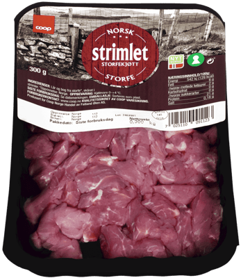 Coop Strimlet Storfekjøtt 300g fra COOP Produktet er tilgjengelig hos Coop til en pris av 83.90 kr. Produktet leveres av FATLAND SALG AS. Produktet ble første gang registrert 9.1.2022 og sist oppdatert 16.7.2023. Prisen har holdt seg stabil på 83.90 kr.