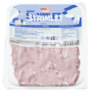 Coop Strimlet Svinekjøtt 350g fra COOP Produktet er tilgjengelig hos Coop til en pris av 63.90 kr. Produktet leveres av FATLAND SALG AS. Produktet ble første gang registrert 9.1.2022 og sist oppdatert 16.7.2023. Prisen har endret seg fra 61.90 kr til 63.90 kr over tid.