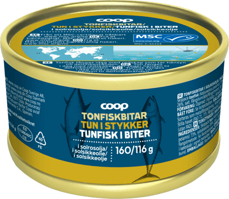 Coop Tunfisk i Olje Msc 160g fra COOP er et produkt innen Middag, Middagshermetikk. Produktet er tilgjengelig hos Coop til en pris av 14.90 kr. Produktet inneholder følgende allergener: Fisk. Produktet leveres av FRINSA UK LIMITED. Produktet ble første gang registrert 9.1.2022 og sist oppdatert 16.7.2023. Prisen har holdt seg stabil på 14.90 kr.