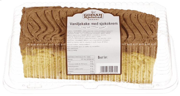 Coop Vaniljekake med Sjokoladekrem 420g fra GOMAN Produktet er tilgjengelig hos Coop til en pris av 79.80 kr. Produktet inneholder følgende allergener: Egg, Gluten, Melk, Soya. Produktet leveres av GOMAN AS. Produktet ble første gang registrert 15.7.2022 og sist oppdatert 16.7.2023. Prisen har holdt seg stabil på 79.80 kr.