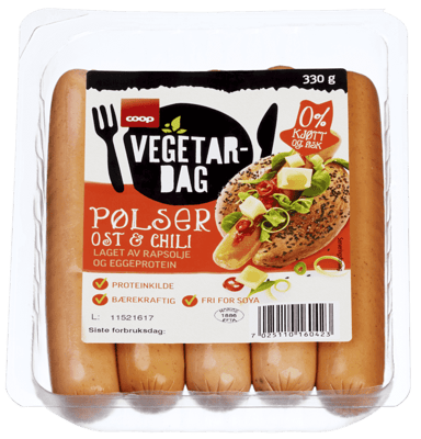 Coop Vegetardag Pølser Chili/Ost 330g