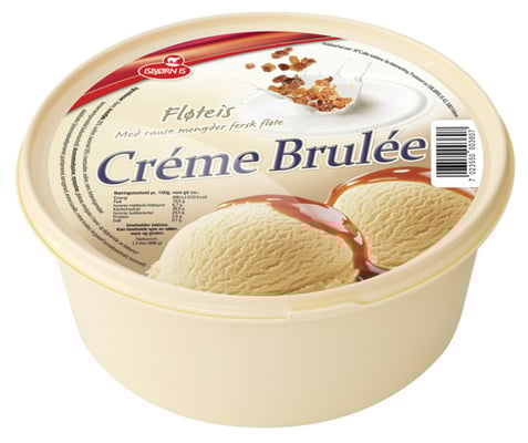 Vann, kremfløte 25%, sukker, karamell 10% ( invertsukker, sukker, vann, fortykningsmiddel (karragenan), konserveringsmiddel (kaliumsorbat)), skummetmelkpulver, mysepulver, glukose, emulgator ( mono- og diglyserider av fettsyrer), stabilisator (johannesbrødkjernemel, guarkjernemel, karragenan), aroma (vanillin, creme brulée), fargestoff (annattoekstrakt, karamell).