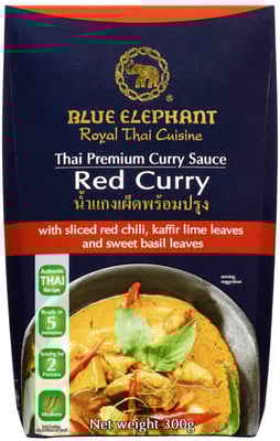 Curry Sauce Red 300g Blue Elephant fra Blue elephant er et produkt innen Middagstilbehør, Sauser, Asiatiske sauser. Produktet er tilgjengelig hos Meny til en pris av 89.00 kr. Vekten er 300 g. Produktet inneholder følgende allergener: Fisk, Skalldyr. Produktet leveres av Oluf lorentzen as. Produktet ble første gang registrert 15.7.2022 og sist oppdatert 24.9.2023. Prisen har holdt seg stabil på 89.00 kr.