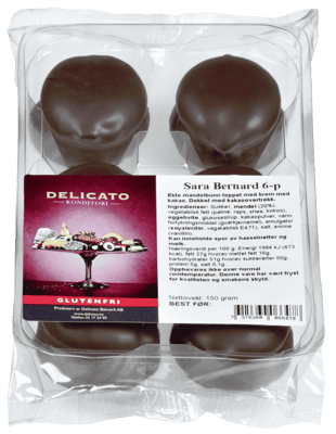 Delicato Sara Bernard 6pk 150g fra DELICATO er et produkt innen Bakeri, Kaker, Biskvi. Produktet er tilgjengelig hos Coop til en pris av 55.90 kr. Produktet inneholder følgende allergener: Egg, Nøtter, Soya. Produktet leveres av BAXT AS. Produktet ble første gang registrert 9.1.2022 og sist oppdatert 16.7.2023. Prisen har holdt seg stabil på 55.90 kr.