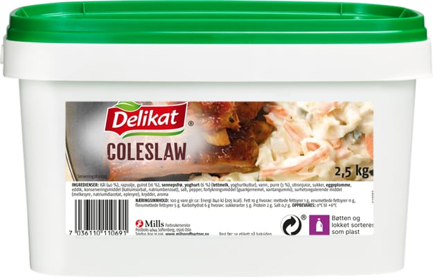 Delikat Coleslaw 2.5kg fra Delikat Vekten er 2500 g. Produktet inneholder følgende allergener: Egg, Melk, Sennep. Produktet leveres av MILLS AS. Produktet ble første gang registrert 11.6.2023 og sist oppdatert 6.9.2023.