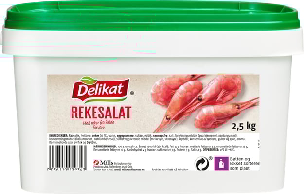 Delikat Rekesalat 2.5kg fra Delikat Vekten er 2500 g. Produktet inneholder følgende allergener: Egg, Sennep, Skalldyr. Produktet leveres av MILLS AS. Produktet ble første gang registrert 11.6.2023 og sist oppdatert 6.9.2023.