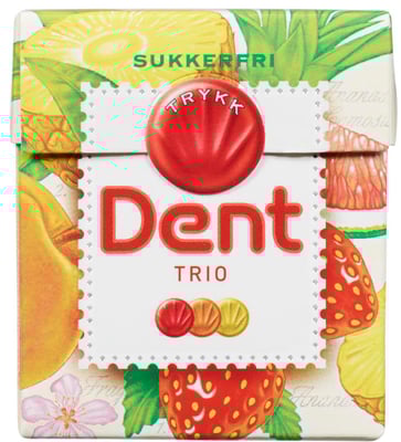 Dent Trio 24g fra Dent er et produkt innen Snacks & godteri, Pastiller. Produktet er tilgjengelig hos Joker til en pris av 22.90 kr. Vekten er 24 g. Produktet leveres av Brynild as. Produktet ble første gang registrert 9.1.2022 og sist oppdatert 29.9.2023. Prisen har holdt seg stabil på 22.90 kr.
