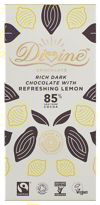 Divine 85% Dark Chocolate With Lemon Fairtrade Organic Vegan 80g