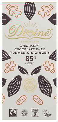 Divine 85% Dark Chocolate With Turmeric & Ginger Fairtrade Organic Vegan 80g