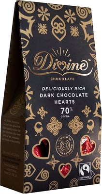 Divine Fairtrade 70% Mørke Sjokoladehjerter 80g
