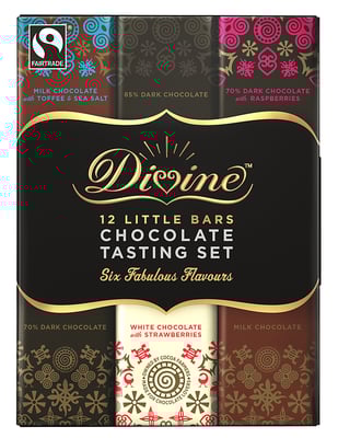 Milk Chocolate with Toffee & Sea Salt: Fairtrade sukker, Fairtrade kakao smør, skummet melk pulver, Fairtrade kakao masse, toffee 10% (Fairtrade sukker, glykose sirup, smørfett (melk), salt, havsalt, solsikke lesitin, Fairtrade vanilje