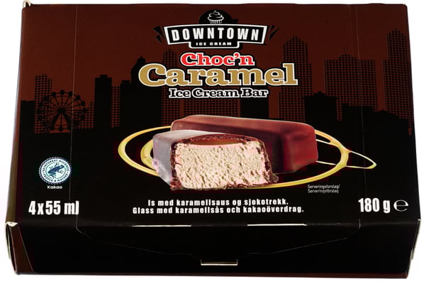 70% is (rekonstituert skummetmelk, kokosolje, sukker, vann, glukose-fruktosesirup, mysepulver (melk), byggmaltekstrakt, emulgator (E471), aroma, fortykningsmidler (E410, E412), 21,5% sjokotrekk (sukker, kakaosmør*, kakaomasse*, kokosolje, helmelkspulver, konsentrert smør, emulgator (E322 (soya)), aroma), 8.5% karamellsaus (søtet kondensert skummetmelk, sukker, vann, glukosesirup, smør, fortykningsmiddel (E407)).