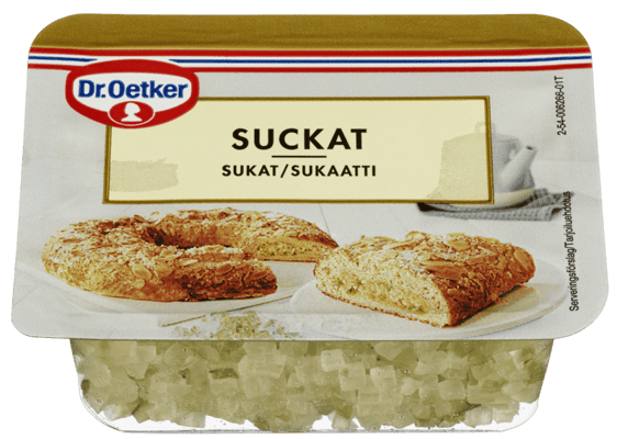 Dr. Oetker Sukat 100g fra DR. OETKER Produktet er tilgjengelig hos Coop til en pris av 21.90 kr. Produktet leveres av DR. OETKER NORGE AS. Produktet ble første gang registrert 9.1.2022 og sist oppdatert 16.7.2023. Prisen har endret seg fra 23.90 kr til 21.90 kr over tid.
