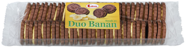 Duo Banan 250g Vekten er 0.25 kg. Produktet inneholder følgende allergener: Egg, Gluten, Melk, Soya. Produktet leveres av CALAS AS. Produktet ble første gang registrert 11.6.2023 og sist oppdatert 6.9.2023.
