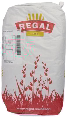Durummel 25kg Regal fra Regal Vekten er 25 kg. Produktet inneholder følgende allergener: Gluten. Produktet leveres av LANTMANNEN CEREALIA AS. Produktet ble første gang registrert 11.6.2023 og sist oppdatert 14.3.2026.