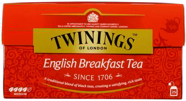 English Breakfast Tea 25pos Twinings fra Twinings er et produkt innen Drikke, Te. Produktet er tilgjengelig hos SPAR til en pris av 47.53 kr. Vekten er 25 piece. Produktet leveres av Haugen - gruppen as. Produktet ble første gang registrert 9.1.2022 og sist oppdatert 14.3.2026. Prisen har endret seg fra 67.90 kr til 47.53 kr over tid.