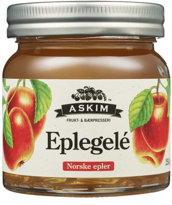 Eplegele 250g Askim fra Askim er et produkt innen Pålegg & frokost, Syltetøy. Produktet er tilgjengelig hos Meny til en pris av 34.90 kr. Vekten er 250 g. Produktet leveres av Askim frukt- og bærpresseri. Produktet ble første gang registrert 9.1.2022 og sist oppdatert 10.9.2023. Prisen har holdt seg stabil på 34.90 kr.