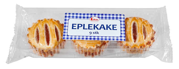 Eplekake 9stk 270g Vekten er 0.27 kg. Produktet inneholder følgende allergener: Egg, Gluten, Soya. Produktet leveres av CALAS AS. Produktet ble første gang registrert 11.6.2023 og sist oppdatert 6.9.2023.