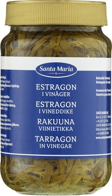 Estragon i Eddik 330g Santa Maria fra Santa Maria Vekten er 330 g. Produktet leveres av SANTA MARIA NORGE AS. Produktet ble første gang registrert 11.6.2023 og sist oppdatert 6.9.2023.