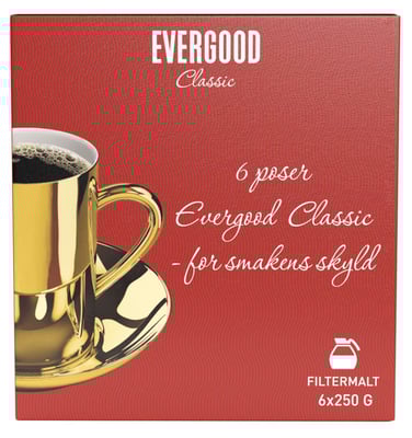 Evergood Classic Filtermalt 6x250g fra Evergood er et produkt innen Drikke, Kaffe, Filtermalt kaffe. Produktet er tilgjengelig hos Meny til en pris av 289.00 kr. Vekten er 1500 g. Produktet leveres av Joh. johannson kaffe. Produktet ble første gang registrert 9.1.2022 og sist oppdatert 3.10.2023. Prisen har holdt seg stabil på 289.00 kr.