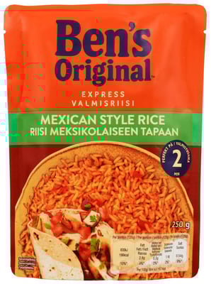 Express Ris Mexican Style 250g Ben's Original fra Ben's original er et produkt innen Middag, Ris, Ris. Produktet er tilgjengelig hos Meny til en pris av 33.80 kr. Produktet leveres av Mars norge as. Produktet ble første gang registrert 9.1.2022 og sist oppdatert 16.7.2023. Prisen har holdt seg stabil på 33.80 kr.