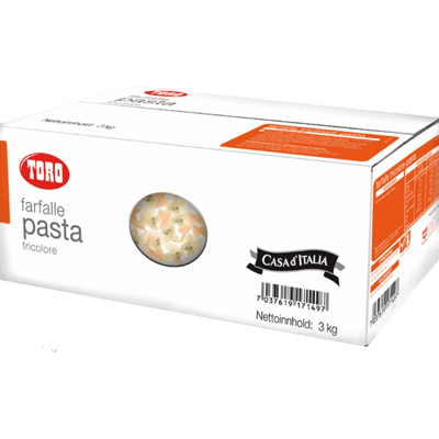Farfalle Tricolore 3kg fra ORKLA Produktet er tilgjengelig hos Engrosnett til en pris av 237.00 kr. Produktet ble første gang registrert 13.1.2022 og sist oppdatert 7.10.2023. Prisen har holdt seg stabil på 237.00 kr.
