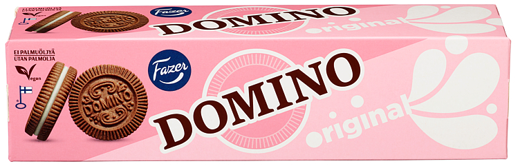 Fazer Domino Original 175g fra Fazer Vekten er 175 g. Produktet inneholder følgende allergener: Gluten, Soya. Produktet leveres av FAZER NORWAY AS. Produktet ble første gang registrert 11.6.2023 og sist oppdatert 6.9.2023.