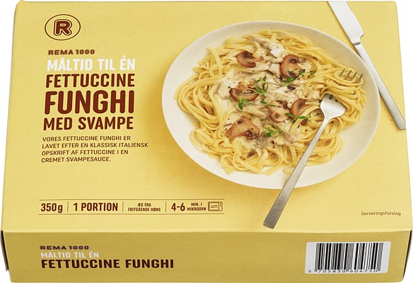 Fettuccine Funghi 350g R fra R Vekten er 350 g. Produktet inneholder følgende allergener: Egg, Gluten, Melk. Produktet leveres av REMA 1000 NORGE AS (LEV.). Produktet ble første gang registrert 11.6.2023 og sist oppdatert 6.9.2023.