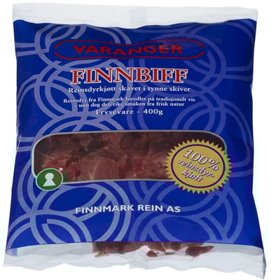 Finnbiff 400g Reinsdyrkjøtt Varanger fra Varanger Vekten er 0.4 kg. Produktet leveres av FINNMARK REIN AS. Produktet ble første gang registrert 11.6.2023 og sist oppdatert 6.9.2023.