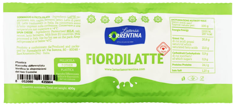 Fiordilatte 400g Latteria Sorrentina fra Latteria sorrentina er et produkt innen Ost, Mozzarella. Produktet er tilgjengelig hos Meny til en pris av 109.00 kr. Vekten er 400 g. Produktet inneholder følgende allergener: Melk. Produktet leveres av Oluf lorentzen as. Produktet ble første gang registrert 15.7.2022 og sist oppdatert 6.9.2023. Prisen har holdt seg stabil på 109.00 kr.