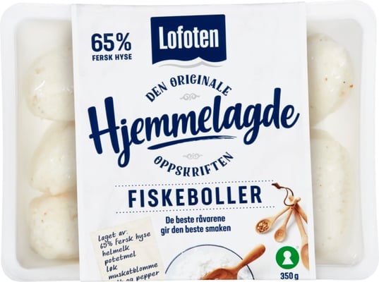 Lofoten Hjemmelagde Fiskeboller er laget etter tradisjonell oppskrift og inneholder 65% fersk renskåret hysefilet. Det høye fiskeinnholdet, sammen med naturlige råvarer som meierismør, melk og fersk løk gir fiskebollene god smak og riktig konsistens. Hjemmelagde Fiskeboller er laget med kun naturlige råvarer og fisken er fanget i det Nordøstlige Atlanterhav.