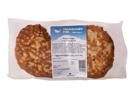 Fiskeburger Chili og Ost 2x150g fra Domstein Vekten er 300 g. Produktet inneholder følgende allergener: Fisk, Melk. Produktet leveres av DOMSTEIN SJØMAT AS. Produktet ble første gang registrert 11.6.2023 og sist oppdatert 6.9.2023.