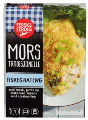 Fiskegrateng 400g Fersk&Ferdig fra Fersk&ferdig Produktet er tilgjengelig hos Meny til en pris av 73.20 kr. Produktet inneholder følgende allergener: Egg, Fisk, Gluten, Melk, Soya. Produktet leveres av Unil as d. Produktet ble første gang registrert 9.1.2022 og sist oppdatert 16.7.2023. Prisen har holdt seg stabil på 73.20 kr.