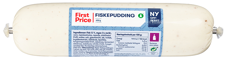Fiskepudding Pølse 650g First Price fra First price Produktet er tilgjengelig hos SPAR til en pris av 24.90 kr. Produktet leveres av Unil as d. Produktet ble første gang registrert 9.1.2022 og sist oppdatert 16.7.2023. Prisen har holdt seg stabil på 24.90 kr.